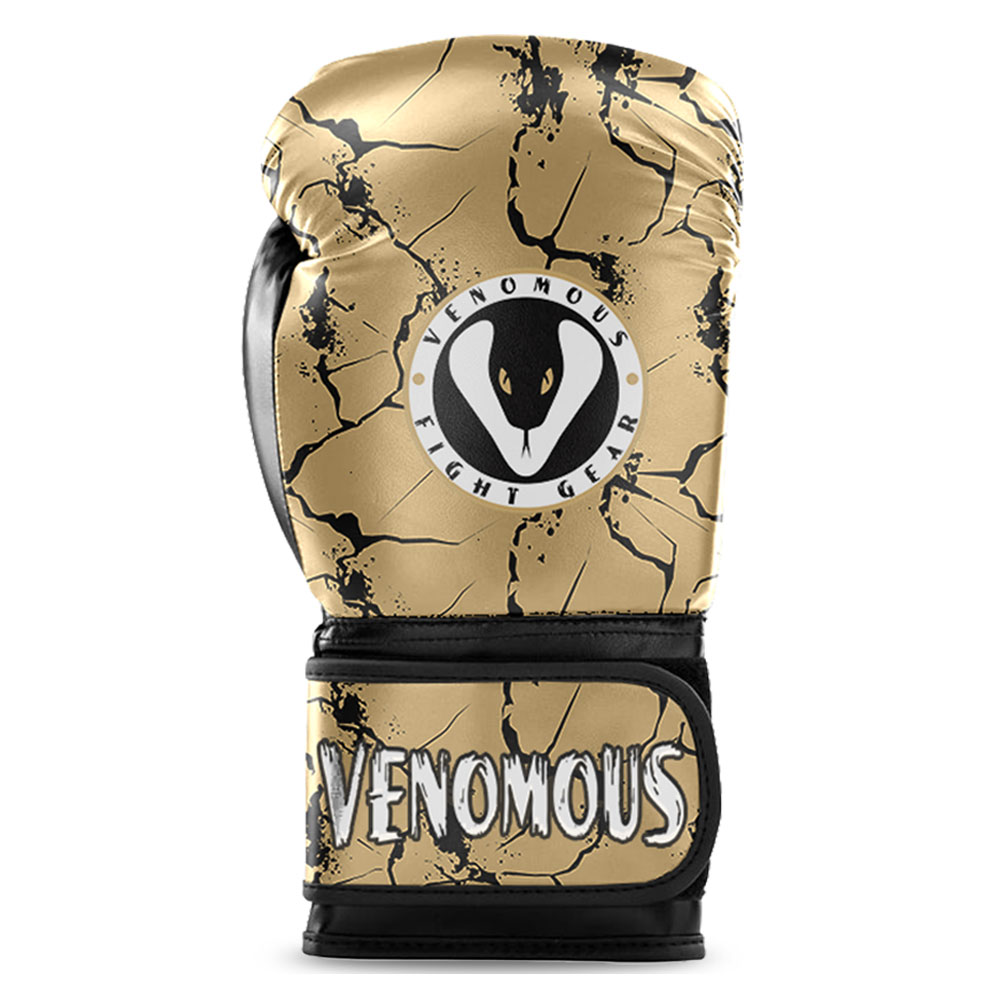 Step into the ring with confidence and style with the Venomous Golden Line Boxing Gloves. Designed for fighters who demand performance and durability, these gloves feature a striking gold-and-black cracked design that symbolizes power, aggression, and resilience. Crafted from high-quality synthetic leather, they offer excellent resistance to wear and tear, making them ideal for regular training and sparring.