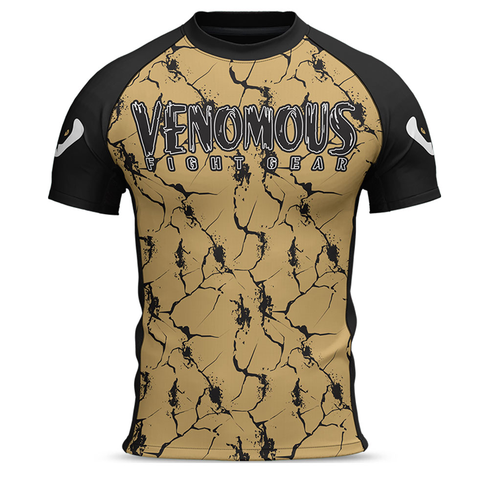 Built for fighters who train hard and compete harder. Designed with Gold-Black-Cracked and premium performance fabric, this rash guard delivers both style and durability inside and outside the cage. The MMA rash guard is short sleeve and made of Polyester/Spandex fabrics, Can be customized with Sublimation or Heat Transfer printing and labeling.